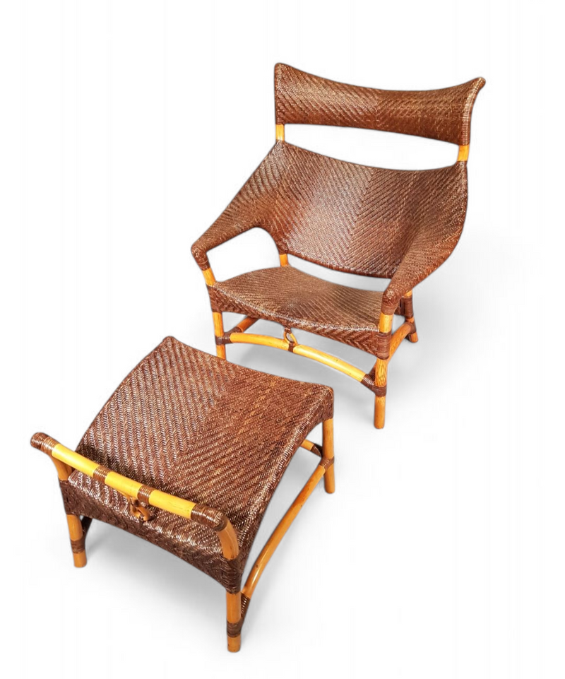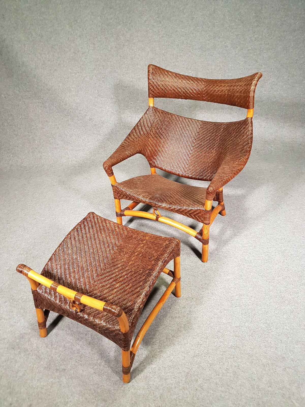 Yuzuru Yamakawa Lounge chair and footstool designed by Yuzuru Yamakawa rattan and bamboo