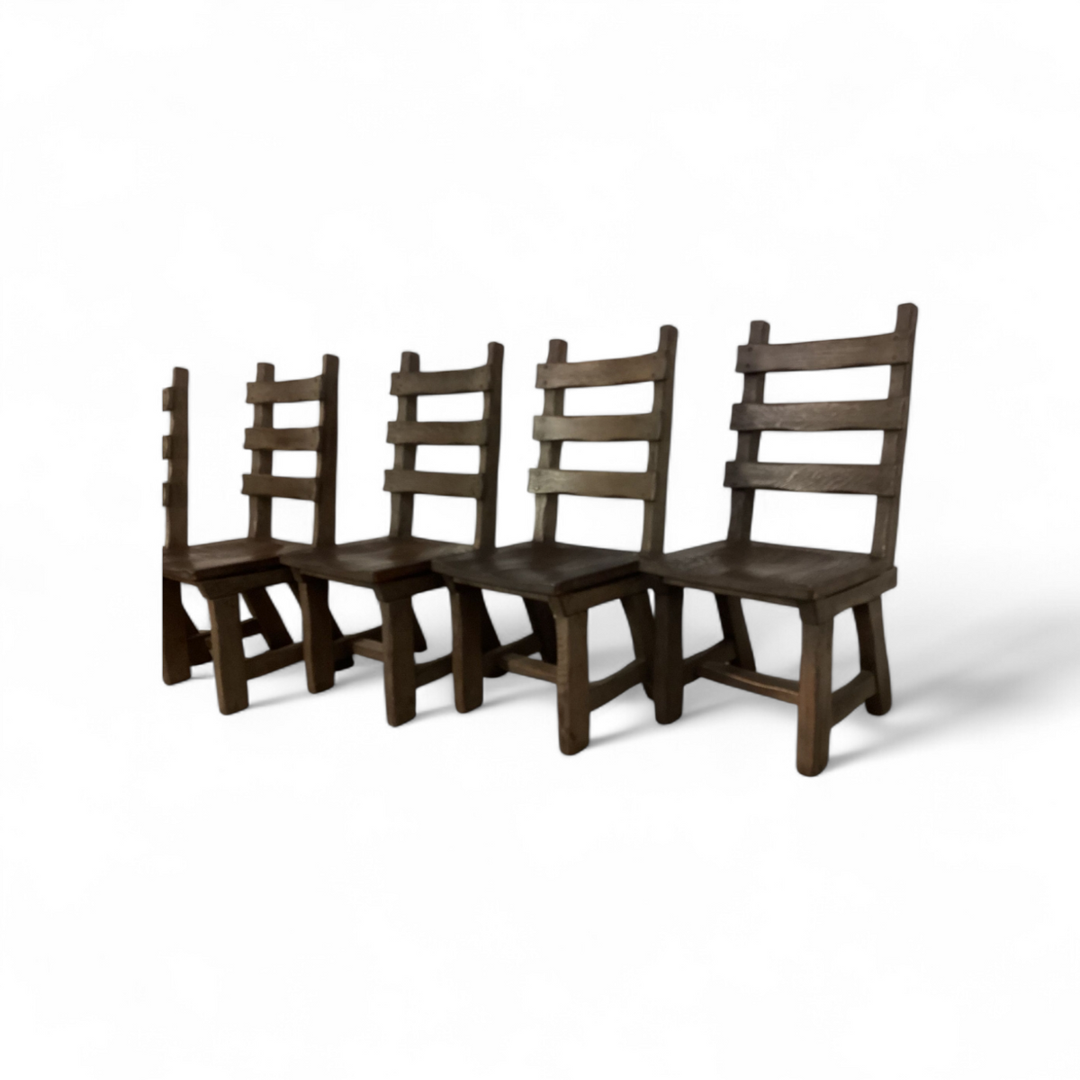 6 x Brutalist oak dining chairs / Belgium 1970s