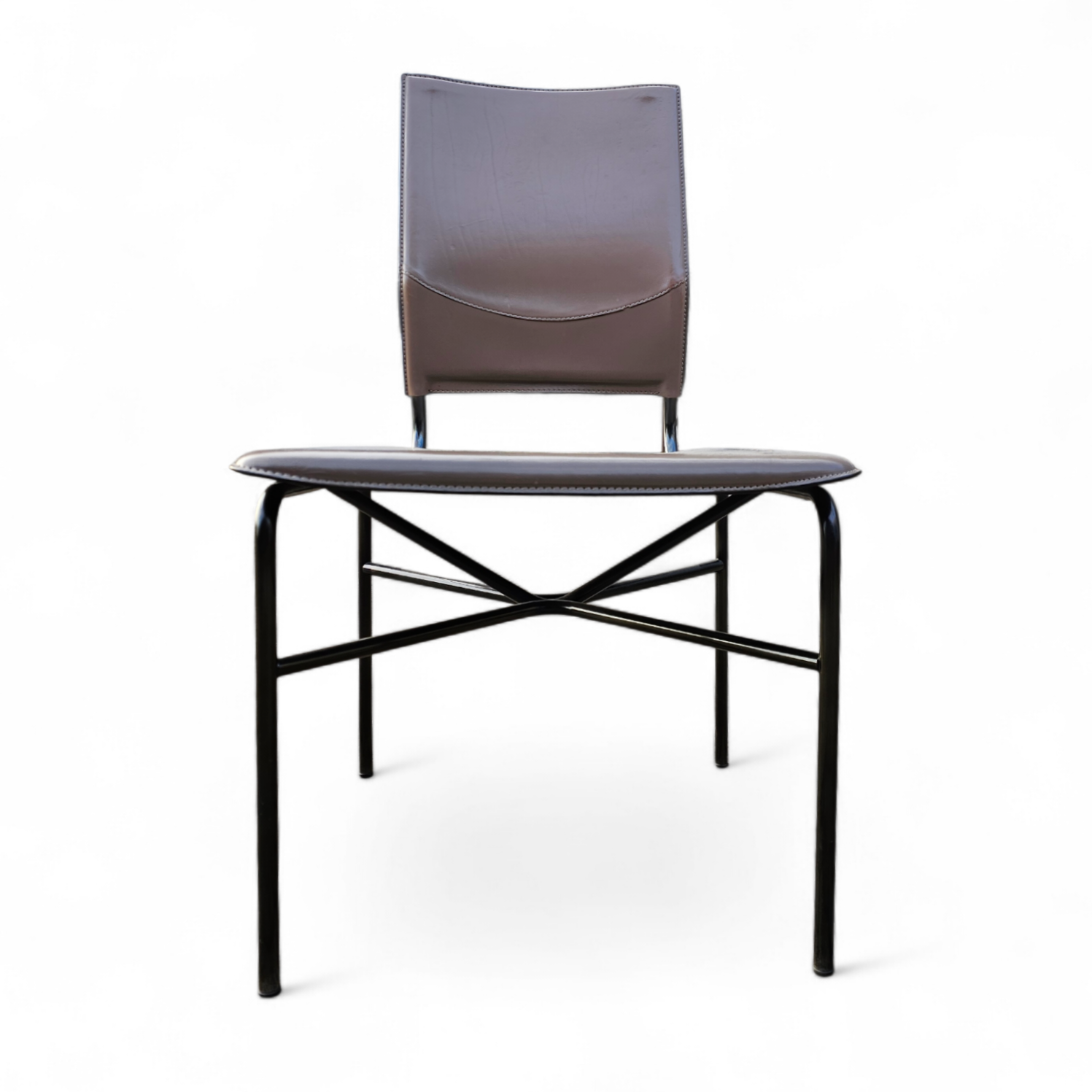 6 x taupe leather dining chairs by Ross Littell for Matteo Grassi