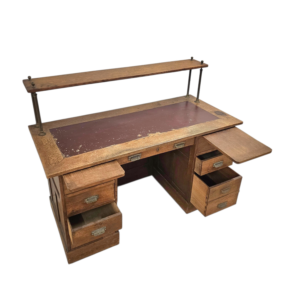 Victorian oak desk / Bin or Drawer Cup Pull by P. & F. Corbin / 1920s